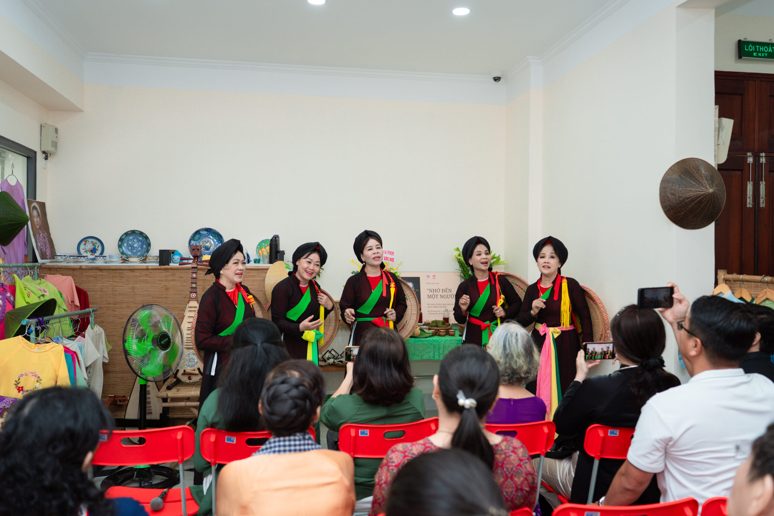 Nghệ sĩ Thúy Hoan cùng nhóm Quan họ mang đến phần trình diễn mộc mạc mà sâu lắng, như chính tinh thần dân tộc mà cố giáo sư hằng tôn vinh.